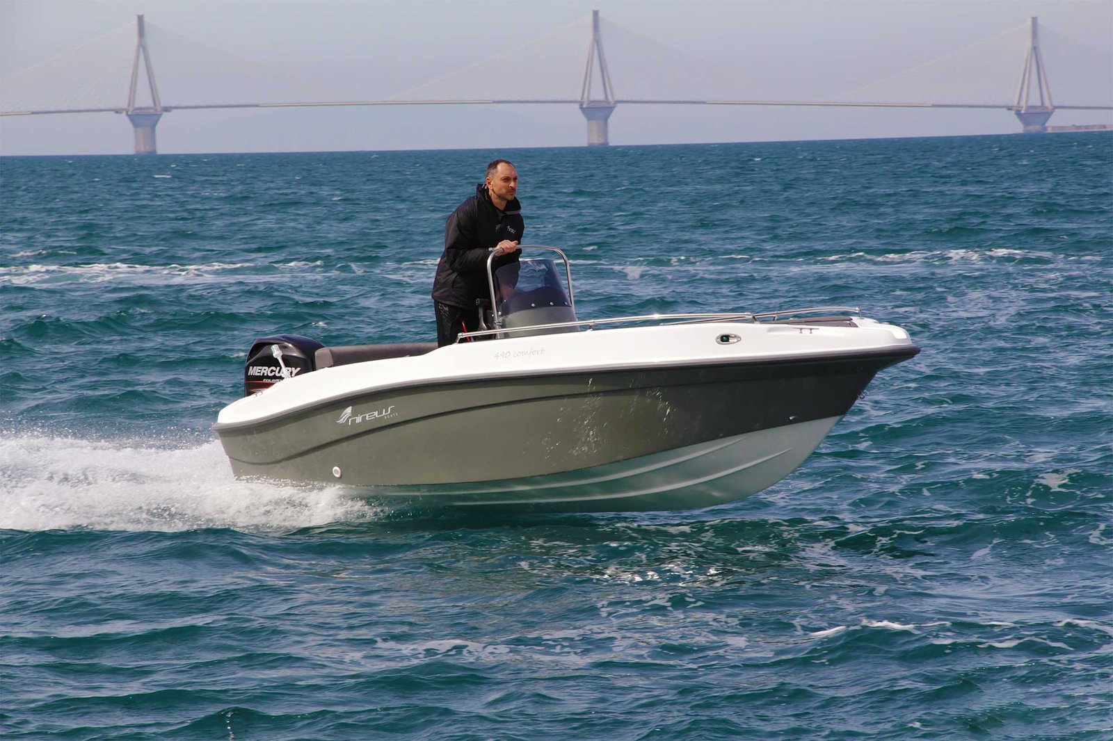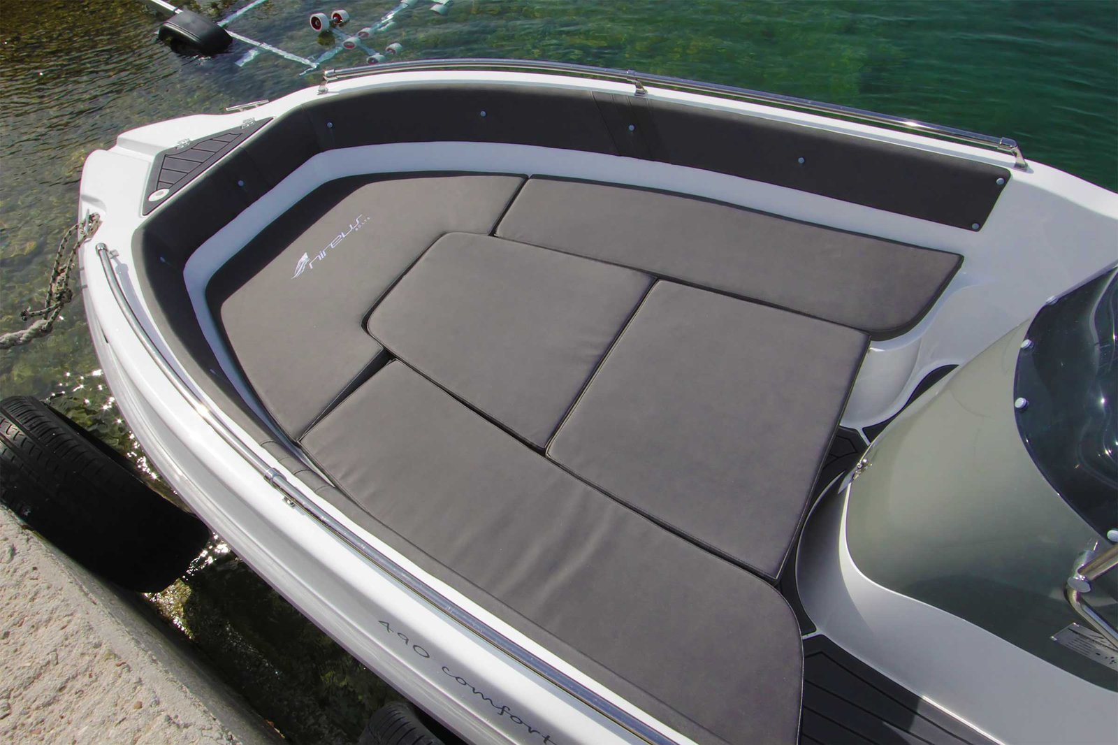 Οι αποθηκευτικοί χώροι είναι κάτι που σίγουρα δεν θα λείψουν στον κάτοχο ενός 490 Comfort, ενώ ο χώρος μπροστά από την κονσόλα διαμορφώνει έναν μεγάλο περιμετρικό καναπέ, ο οποίος με την προσθήκη δύο έξτρα μαξιλαριών στην μέση μετατρέπεται σε μια μεγάλη ξαπλώστρα για ηλιοθεραπεία.